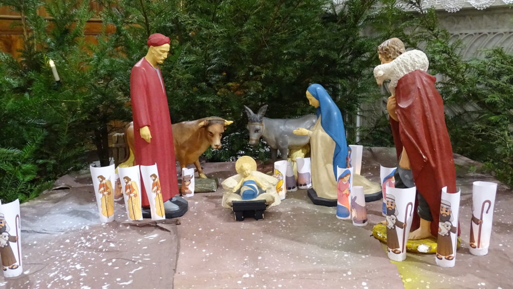 C’est par une veillée préparée et assurée par les enfants de la catéchèse que la célébration a débuté. Le thème retenu mettait en jeu tous les personnages de la crèche : Joseph et Marie bien sûr, mais aussi l’âne et le bœuf, ainsi que les bergers. Une merveilleuse façon d’accueillir la venue du Christ Sauveur, lui qui est venu…pour tout sauver. Un merci à tous les adultes qui les ont encadrés et qui ont eux-mêmes participé.