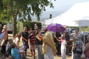 Une procession de l’église du village jusqu’à la statue a précédé la cérémonie réunissant une foule de paroissiens de Terrebasse et des alentours formant un cortège de plusieurs kilomètres.